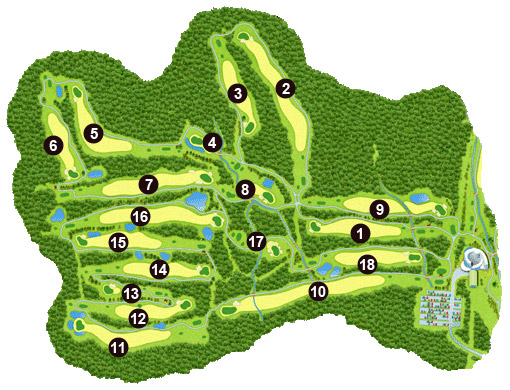 | Hole 10 | Par 6, Blue 721, White 704, Red 578 The specialty hole of par 6. The tee shot is a note of the pond on the right side. Uphilled after the second shot. Watch out for the creek in front of the green. |